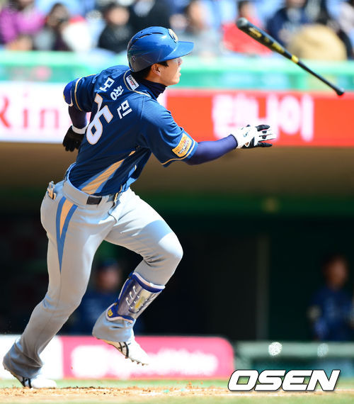 2회초 무사 주자 1루 NC 모창민이 좌중월 역전 투런 홈런을 날리고 있다.