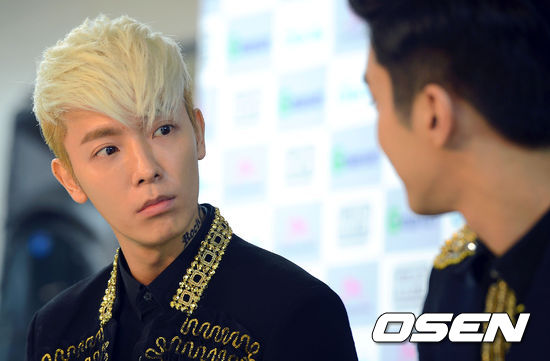 24일 오후 서울 올림픽공원 체조경기장에서 열린 슈퍼주니어 월드 투어 '슈퍼쇼5' 기자회견에서 동해가 시원을 바라보고 있다.