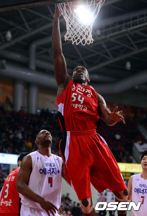 24일 오후 안양 실내체육관에서 열린 '2012-2013 KB국민카드 프로농구' 6강 플레이오프 2차전 안양 KGC인삼공사와 고양 오리온스의 경기 1쿼터 키브웨가 슛을 시도하고 있다.