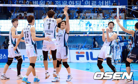 삼성화재 블루팡스가 24일 대전 충무체육관에서 열린 NH농협 2012-2013시즌 V리그 남자부 챔피언결정전 1차전 대한항공 점보스와 경기서 세트스코어 3-1(23-25, 25-20, 25-18, 25-22)로 승리를 거뒀다. 이날 승리로 삼성화재는 6년 연속 챔피언결정전 우승을 향해 첫 걸음을 내딛었다.