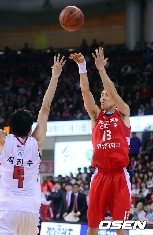 24일 오후 안양 실내체육관에서 열린 '2012-2013 KB국민카드 프로농구' 6강 플레이오프 2차전 안양 KGC인삼공사와 고양 오리온스의 경기 2쿼터 김성철이 미들슛을 시도하고 있다.