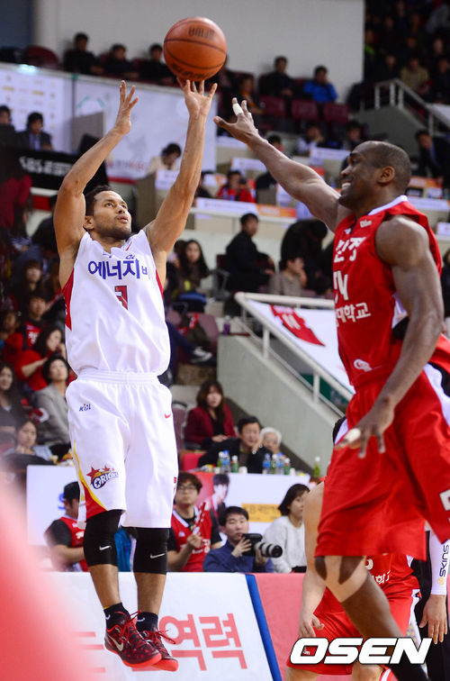24일 오후 안양 실내체육관에서 열린 '2012-2013 KB국민카드 프로농구' 6강 플레이오프 2차전 안양 KGC인삼공사와 고양 오리온스의 경기 3쿼터 전태풍이 키브웨를 앞에두고 슛을 시도하고 있다.
