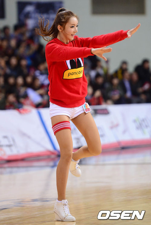 24일 오후 안양 실내체육관에서 열린 '2012-2013 KB국민카드 프로농구' 6강 플레이오프 2차전 안양 KGC인삼공사와 고양 오리온스의 경기, 치어리더들이 공연을 펼치고 있다.