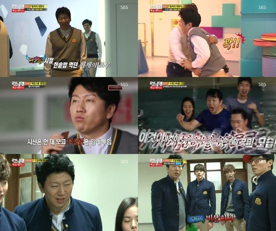 24일 오후 방송된 SBS 예능프로그램 '일요일이 좋다-런닝맨'는 신사고 레이스로 꾸며졌다. 이날 배우 김수로, 이종석, 김우빈, 민효린, 그룹 씨엔블루의 이종현은 유재석과 연극부 팀을 이뤄 기존 멤버들이 모인 육상부 팀과 치열한 깃발 쟁탈전을 벌였다.