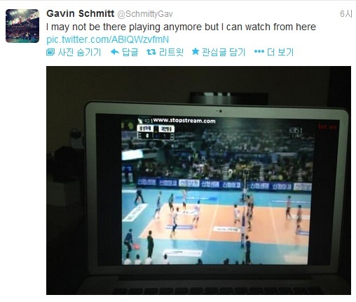 삼성화재의 '괴물 용병'으로 이름을 날렸던 가빈 슈미트(27, 이스크라 오딘소보)가 자신의 트위터를 통해 한국 V리그에 대한 여전한 관심과 애정을 보였다.