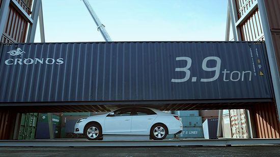 인천 연안부두 컨테이너 집하장에서 이뤄진 이번 촬영은 30여 명의 연구진과 마케팅 전문가, 제작팀이 약 3개월간 수많은 시뮬레이션을 거쳐 진행됐다. 컨테이너를 흔들림 없이 적재하기 위해 4층 높이의 대형 H빔 틀을 설치했고, 최신 헬리캠(Heli-Cam, Helicopter Camera)을 활용해 촬영 현장을 그대로 영상에 담았다.