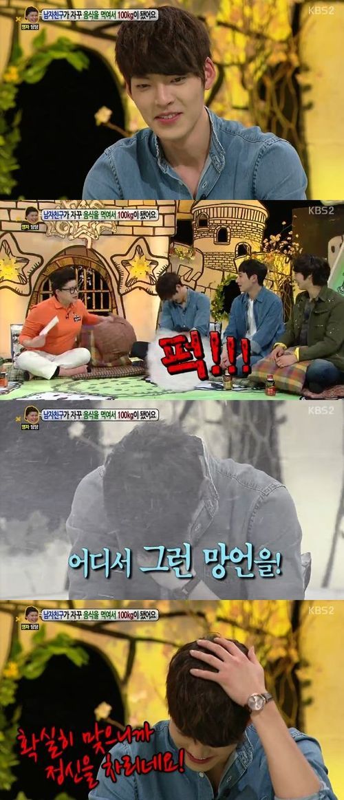 이에 이영자는 김우빈의 말이 끝나기도 전에 안고 있던 쿠션으로 그를 때리며 분노했다. 김우빈은 뒤늦게 “먹는 걸 좋아하는데 운동도 열심히 한다”고 해명해 웃음을 자아냈다.