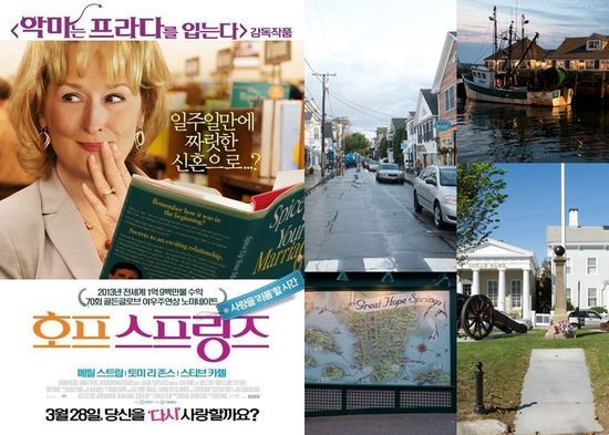 ‘호프 스프링즈’는 영화의 제목이기도 하지만 케이와 아놀드가 부부상담을 받으러 가는 지명이기도 하다. 영화의 주무대인 호프 스프링즈 마을의 배경이 된 스토닝턴은 아름다운 바닷가와 빈티지한 매력을 가진 작은 어촌 마을로 미국 코네티컷 주의 가장 동쪽에 위치한 곳이다.