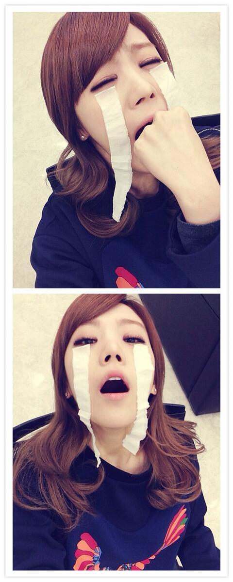 사진 속 리지는 눈 밑에 눈물 모양의 하얀색 휴지를 붙이고 장난스러운 표정을 짓고 있다. 입에 주먹을 넣는가하면 고개를 치켜들고 카메라를 보는 모습이 귀여움을 자아낸다.