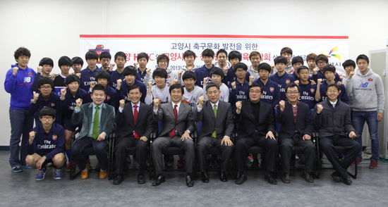고양 HiFC는 지난 25일 오후 7시 고양종합운동장 회의실에서 이영무 감독을 비롯한 선수단과 유청소년 선수 등 약 50여명이 참석한 가운데 고양시 유청소년 연합회와 유청소년 축구 활성화를 위한 MOU를 체결했다.
