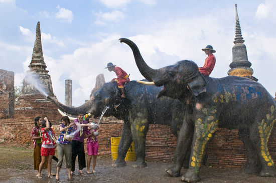 손에 정화수를 뿌려주는 전통에서 비롯된 서로에게 물을 뿌리는 놀이는 이제 송끄란 페스티벌의 상징처럼 되었고 전세계인이 모여 더위를 식히며 흥겨운 물싸움을 벌이는 축제의 장이 펼쳐진다.