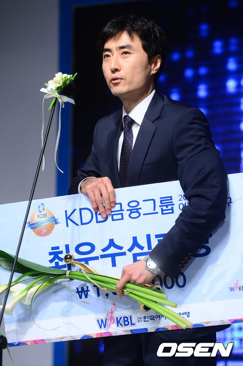 26일 오전 서울 한남동 그랜드 하얏트 호텔에서 열린 KDB 금융그룹 2012-13시즌 여자프로농구(WKBL) 시상식에서 '최우수 심판상'을 수상한 류상호 심판이 수상 소감을 말하고 있다.