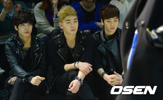 26일 오후 서울 여의도IFC에서 열린 '2013-14 F/W 서울패션위크' 박윤수 디자이너 패션쇼를 찾은 뉴이스트가 패션쇼를 관람하고 있다.