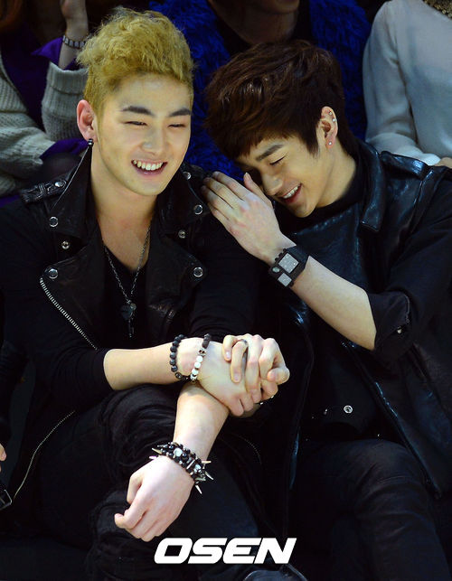 26일 오후 서울 여의도IFC에서 열린 '2013-14 F/W 서울패션위크' 박윤수 디자이너 패션쇼를 찾은 뉴이스트가 패션쇼를 관람하고 있다.