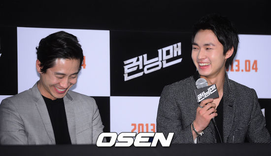 이민호는 26일 오후 서울 CGV 왕십리에서 열린 영화 '런닝맨' 언론배급시사회 및 기자간담회에서 "송강호 선배는 푸근한 아빠같고 신하균 선배는 친구같은 아빠같다"라고 말했다.