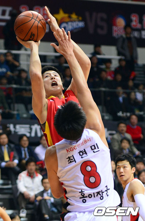 26일 오후 고양실내체육관에서 열린 '2012-2013 KB국민카드 프로농구' 6강 플레이오프 3차전 고양 오리온스와 안양 KGC의 경기 1쿼터 오리온스 최진수가 점프슛을 시도하고 있다.