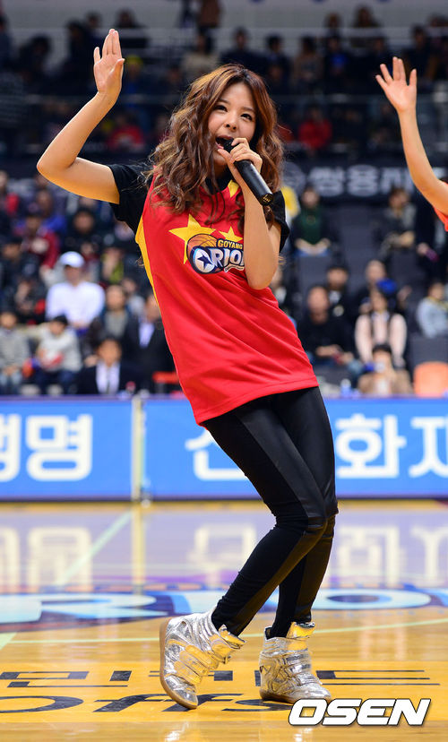 26일 오후 고양실내체육관에서 열린 '2012-2013 KB국민카드 프로농구' 6강 플레이오프 3차전 고양 오리온스와 안양 KGC의 경기, 하프타임 공연으로 김소정이 멋진 무대를 선보이고 있다.