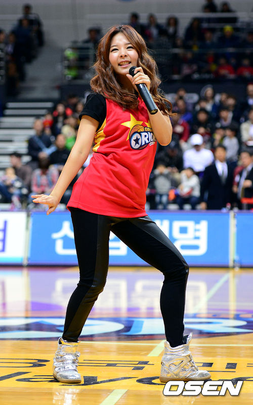 26일 오후 고양실내체육관에서 열린 '2012-2013 KB국민카드 프로농구' 6강 플레이오프 3차전 고양 오리온스와 안양 KGC의 경기, 하프타임 공연으로 김소정이 멋진 무대를 선보이고 있다.