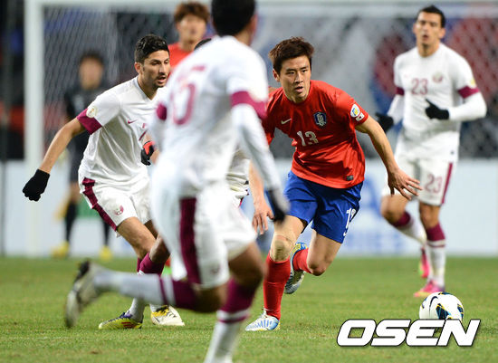 26일 오후 서울월드컵경기장에서 열린 '2014 브라질월드컵 최종예선 5차전' 대한민국과 카타르의 경기, 전반전 한국 지구자철이 카타르 수비진을 돌파하고 있다.