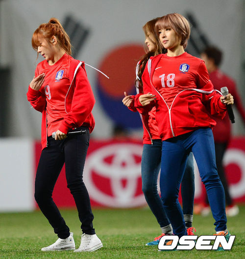 26일 오후 서울월드컵경기장에서 열린 '2014 브라질 월드컵 최종예선 5차전' 대한민국과 카타르의 경기 하프타임 포미닛이 공연을 펼치고 있다.