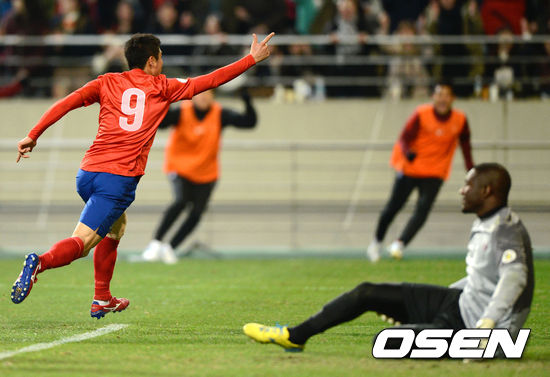 26일 오후 서울월드컵경기장에서 열린 '2014 브라질월드컵 최종예선 5차전' 대한민국과 카타르의 경기, 후반전 한국 이근호가 득점에 성공하고 환호하고 있다.