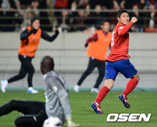 26일 오후 서울월드컵경기장에서 열린 '2014 브라질월드컵 최종예선 5차전' 대한민국과 카타르의 경기, 후반전 한국 이근호가 득점에 성공하고 환호하고 있다.