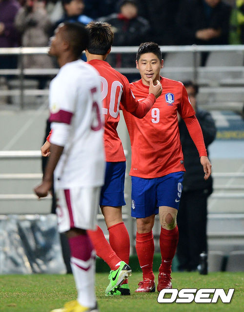 26일 오후 서울월드컵경기장에서 열린 '2014 브라질월드컵 최종예선 5차전' 대한민국과 카타르의 경기, 후반전 한국 이근호가 득점에 성공하고 이동국과 환호하고 있다.