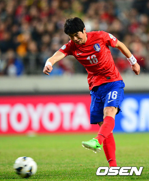 26일 오후 서울월드컵경기장에서 열린 '2014 브라질월드컵 최종예선 5차전' 대한민국과 카타르의 경기 후반 기성용이 강슛을 날리고 있다.