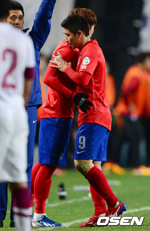 26일 오후 서울월드컵경기장에서 열린 '2014 브라질 월드컵 최종예선 5차전' 대한민국과 카타르의 경기 후반 이근호가 들어가고 손흥민이 교체되 나오고 있다.