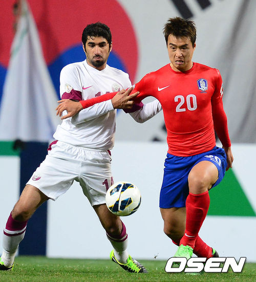 26일 오후 서울월드컵경기장에서 열린 '2014 브라질 월드컵 최종예선 5차전' 대한민국과 카타르의 경기 후반 이동국이 카타르 수비와 볼다툼을 하고 있다.