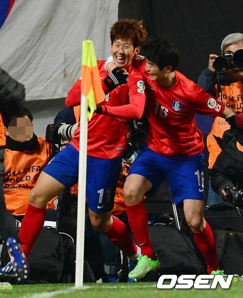 26일 오후 서울월드컵경기장에서 열린 '2014 브라질 월드컵 최종예선 5차전' 대한민국과 카타르의 경기 후반 손흥민이 골을 넣은 후 기뻐하고 있다.