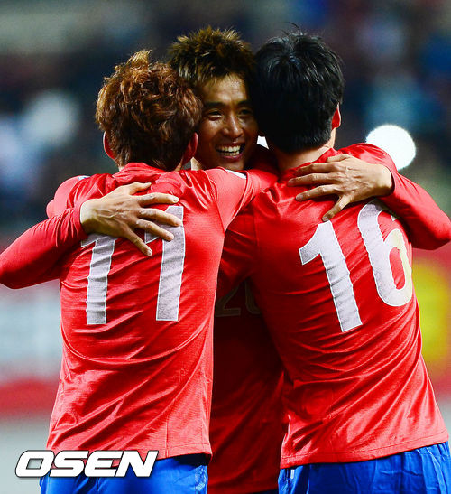 골을 넣은 손흥민이 이동국, 기성용과 기쁨을 나누고 있다. / rumi@osen.co.kr