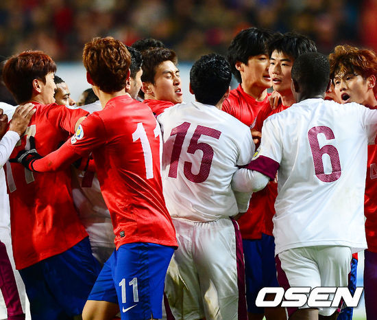 카타르의 침대축구는 계속됐다. 한국이 역습을 펼치던 전반 33분 카타르 공격수 소리아노가 갑작스럽게 넘어졌다. 아무도 방해하는 선수가 없는 가운데서도 그라운드에 벌렁 누워 버렸다. 후반에도 연달아 넘어지고 누워 경기를 지연시킨 카타르는 한국에 시비까지 걸며 더티하게 나왔다. 한국 선수들도 욱하는 모습이었다.