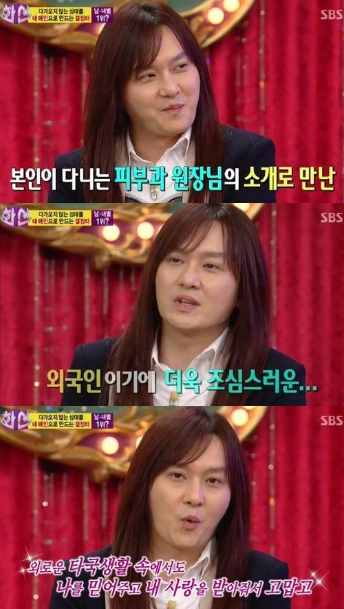 김경호는 “여자친구는 일본인이다. 여자친구는 내가 가수라는 사실을 몰랐다. 피부과 원장님의 소개로 만났다”며 “우리나라 병원 기술이 좋아서 외국에서 환자들이 오는데, 여자친구는 외국인 환자들의 통역을 맡고 있다. 우리나라 말도 잘한다”고 말했다.