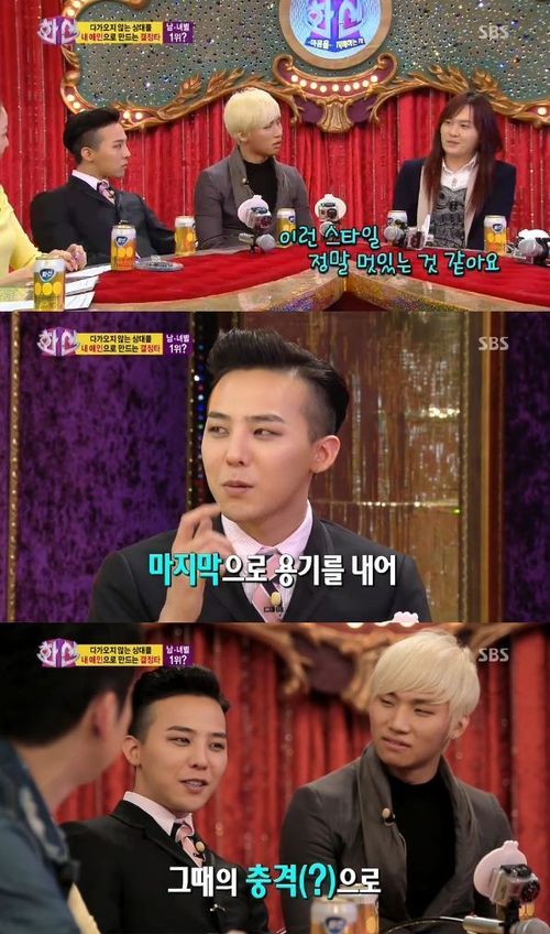 이날 지드래곤은 적극적으로 좋아하는 여자에게 고백하게 된 계기에 대해 "그 전에 너무 데였기 때문"이라며 과거의 경험을 말했다.