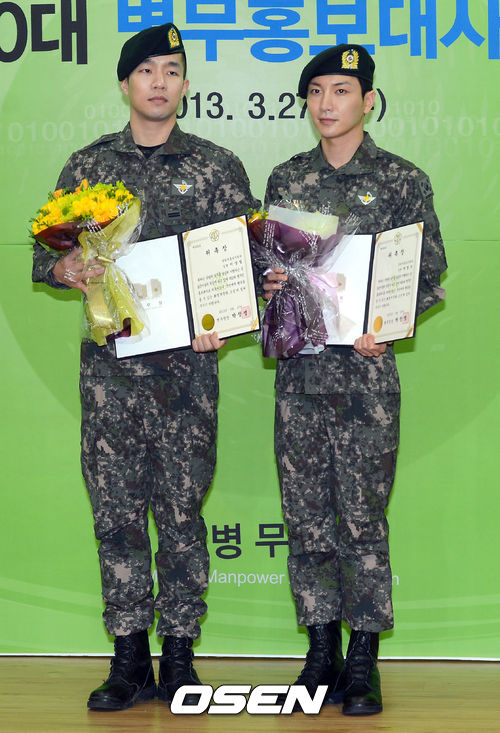 이상철(상추), 박정수(이특)은 2012년 10월 30일 입대해서 신병교육대 수료 시 각각 체력왕과 사격왕 표창을 받고 12월 7일부터 국방부 홍보지원대원으로 복무하고 있으며 2014년 7월 29일 전역 예정이다. /ouxou@osen.co.kr
