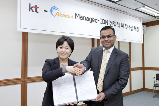 KT와 아카마이코리아가 사업협력 모델 강화를 위한 ‘Managed-CDN 서비스 계약’을 체결했다고 27일 밝혔다.