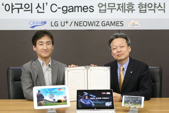 네오위즈게임즈가 LG유플러스와 C-games를 통한 콘텐츠 공급에 대한 제휴협약을 맺고 자체개발 야구 매니지먼트 게임 ‘야구의신’의 클라우드 게임 서비스를 시작할 예정이라고 27일 밝혔다.