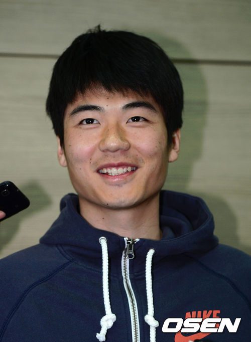 출국에 앞서 기성용이 취재진과 인터뷰를 하고 있다.