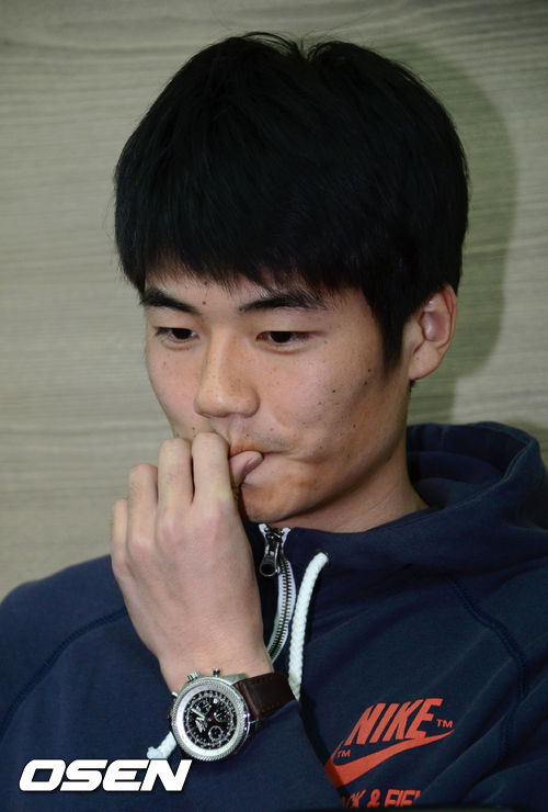 출국에 앞서 기성용이 취재진과 인터뷰를 하고 있다.