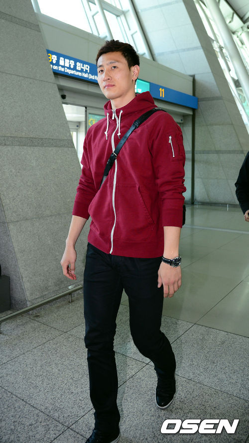 지동원이 출국장으로 들어서고 있다.