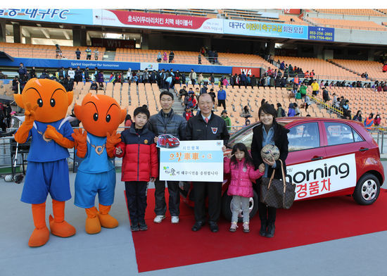 또한 대구지역 대표 기업 및 인사들의 후원릴레이로 진행되는 '으랏車車 + α' 행사에는 지난 개막전에 이어 성남전에도 금복주의 후원으로 진행된다. '으랏車車 + α'는 기아자동차 '모닝' 경품뿐만 아니라 홈경기 득점시 1골당 100만원을 적립해 총 5명에게 추첨을 통해 '전통시장 상품권 20만원권'을 제공한다.