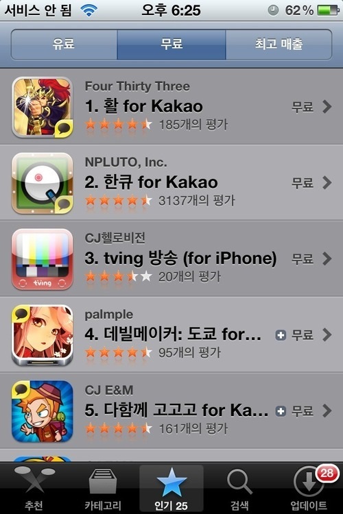 안드로이 버전에서 하루 1000만 판 신화 기록한 '활'이 iOS버전에서도 돌풍을 이어가고 있다. 앱스토어에 출시하자 마자 앱스토어 게임 전체 1위를 차지하며 인기다.