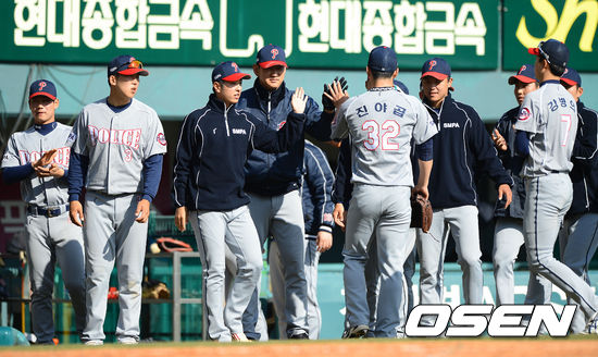 경기종료 후 경찰청 선수들이 승리의 기쁨을 나누고 있다 /soul1014@osen.co.kr
