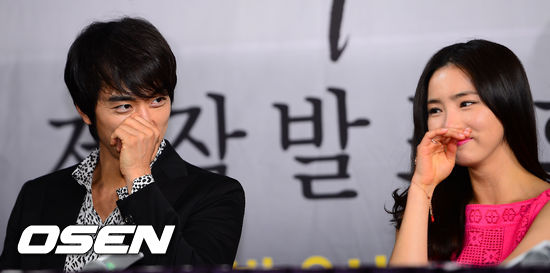 27일 오후 서울 여의도 63빌딩 별관 3층 주니퍼룸에서 열린 MBC 새 수목 미니시리즈 ‘남자가 사랑할 때’ 제작발표회에서 송승헌과 신세경이 미소짓고 있다.