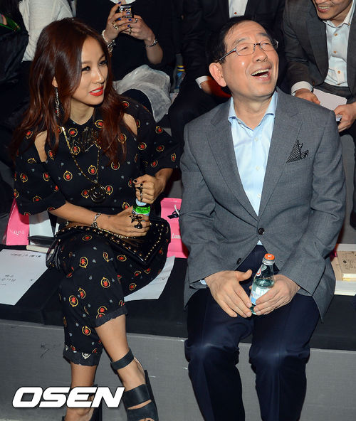 27일 오후 서울 여의도IFC에서 열린 '2013-14 F/W 서울패션위크' 정혁서&배승연 디자이너 패션쇼에 참석한 이효리와 박원순 시장이 패션쇼를 기다리고 있다.