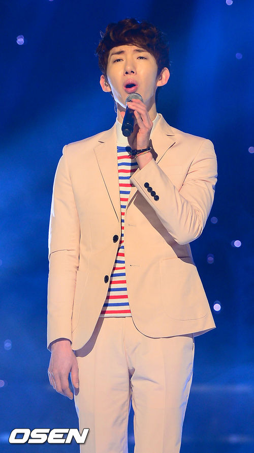 지난 20일 오전 서울 유니클로 악스홀에서 열린 MBC MUSIC '쇼 챔피언' 54회 사전 녹화 무대에서 2AM 조권이 열창을 하고 있다.