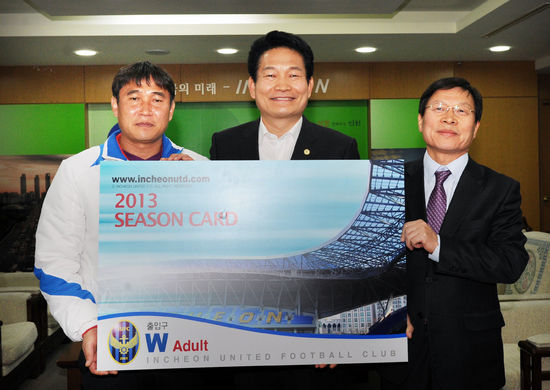 송영길 구단주는 27일 인천시청 접견실에서 ‘2013 인천유나이티드 시즌권’을 구매하며, 시즌권 판매에 적극 나설 것을 약속했다. 송 구단주는 이날 ‘2013 인천구단 시즌권’을 조동암 인천구단 사장과 김봉길 감독으로부터 전달받았으며, 인천시청에서도 시즌권 100매를 구입했다.
