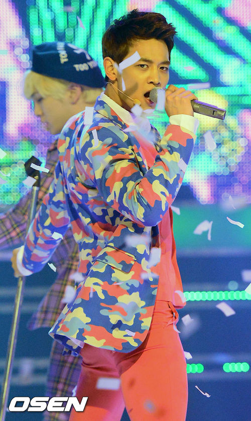 지난 20일 오전 서울 유니클로 악스홀에서 열린 MBC MUSIC '쇼 챔피언' 54회 사전 녹화 무대에서 샤이니가 열창을 하며 화려한 무대를 선보이고 있다.