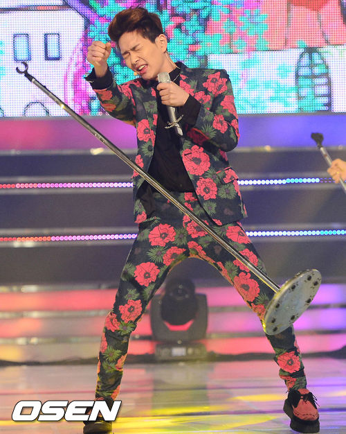 지난 20일 오전 서울 유니클로 악스홀에서 열린 MBC MUSIC '쇼 챔피언' 54회 사전 녹화 무대에서 샤이니의 온유가 열창을 하며 화려한 무대를 선보이던 중 마이크대가 얼굴을 스치며 고통스러워하고 있다.